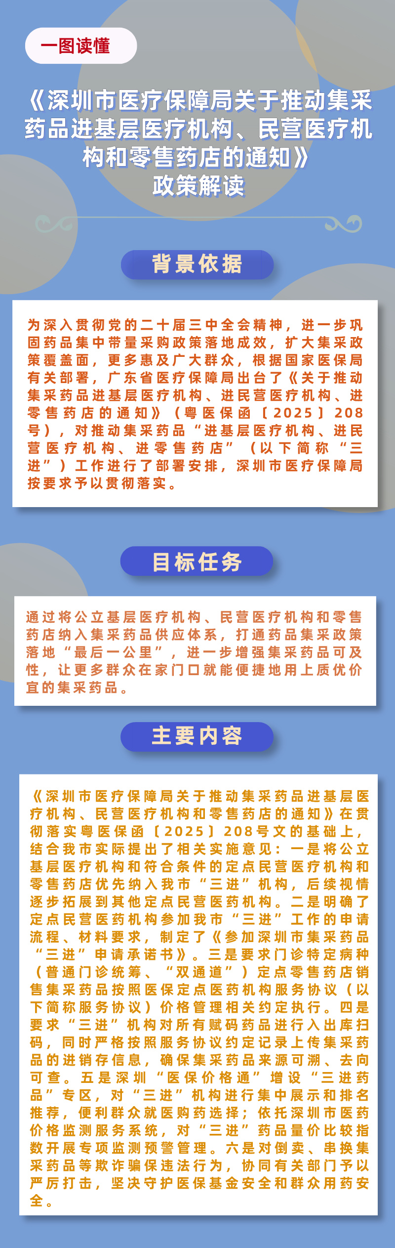 《深圳市医疗保障局关于推动集采药品进基层医疗机构、民营医疗机构和零售药店的通知》政策解读