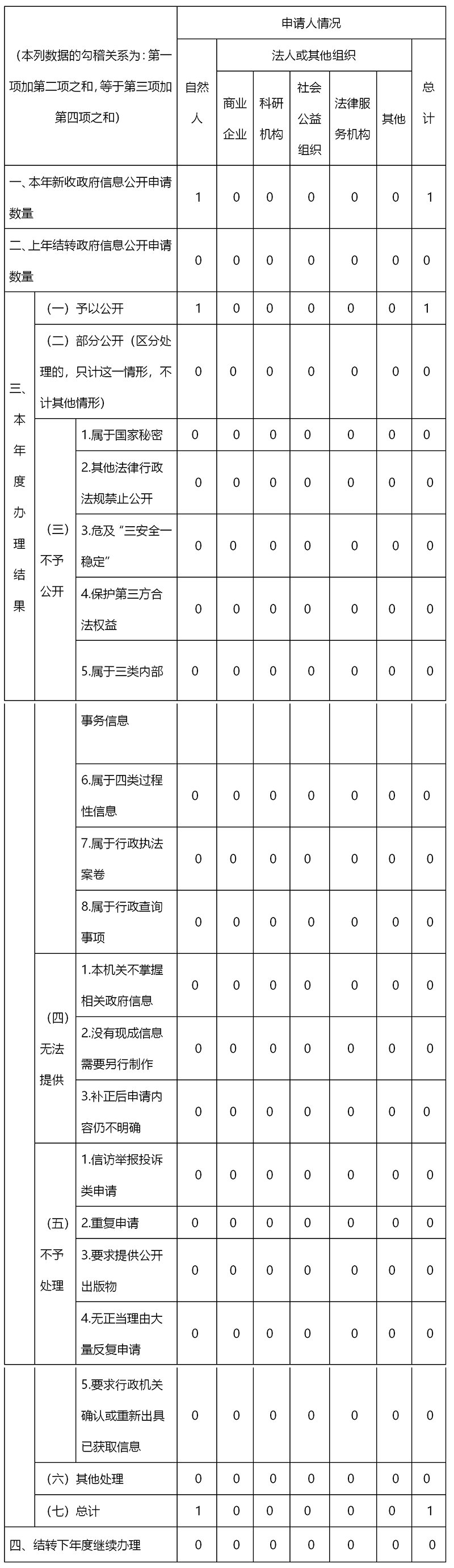 (二)依申请公开方面。畅通多种申请接受渠道,对收到的信息公开申请,根据有关规定及时作出处理和答复。2019年,我局受理政府信息公开申请1件,从受理形式看,网上申请1件,信函申请0件,当面递交申请0件;我局依法答复政府信息公开申请1宗,同意公开1宗,占100%,对收到的所有申请均按规定认真办理,及时回复率达100%。未发生因政府信息公开申请导致行政复议、行政诉讼的情况。